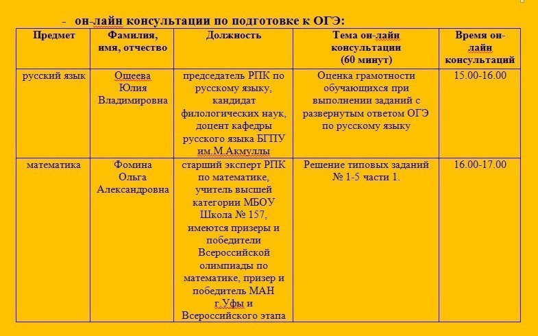ГРАФИК онлайн-консультаций ЕГЭ и ОГЭ